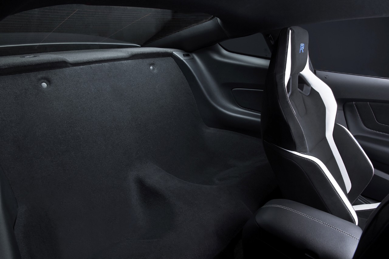 It’s amazing that a car like this can be released to the general driving public. The Shelby GT350R is the driver’s car, much like the SVT Cobra R was when it was released. There is no radio, no A/C, no rear seats — pretty much anything that didn’t make the car faster and could be removed has. There will be an “Electronics Package” for those who want a radio, though. However, the hardcore version will be 130 pounds lighter than the GT350 Track Pack.