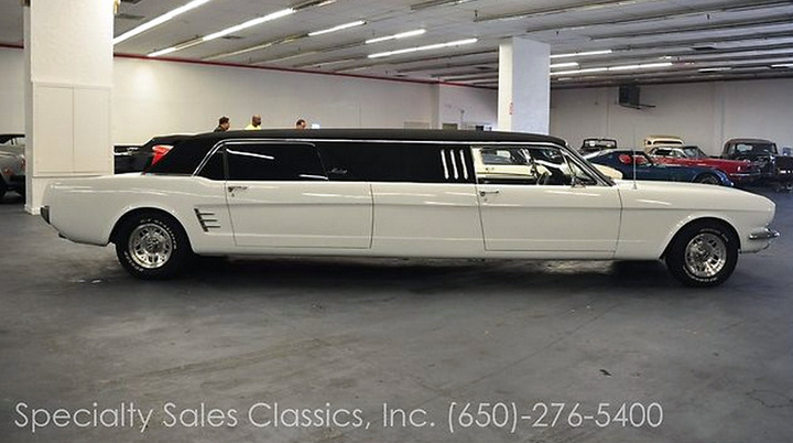 A find on Ebay has turned up a limousine version of a 1966 model of the Ford pony car that seems more fitting for an episode of the sixties Munsters TV show than any serious car collection. But hey, that’s just our opinion.