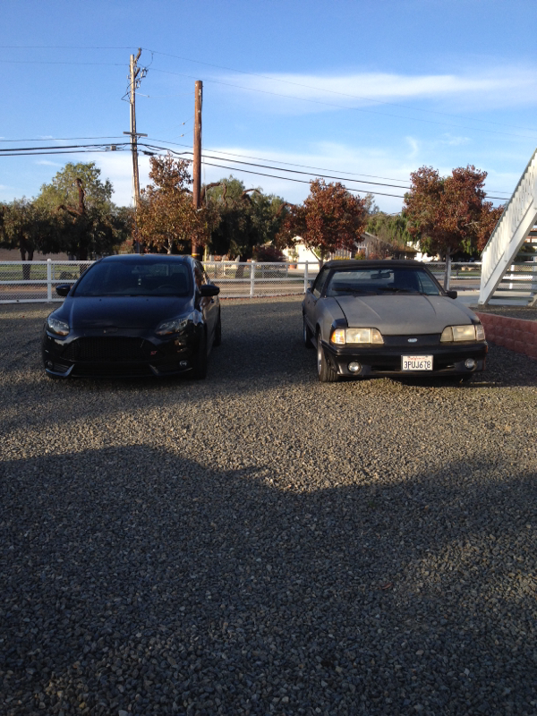 Hey everybody. I just bought a pretty beat up 1988 Mustang GT from a friend here in San Diego, CA. Body needs to be sanded and painted, so until that happens I'm referring to the GT as AshyLarry. The car looks rough but runs strong and has a lot of potential. Steering is loose and shocks are bouncy. The engine runs strong, sounds great and the transmission and clutch seem to have no issues. I have big plans for this car. This is my first car that I have owned with the purpose of restoring, looking forward to the challenge. Picked the car up on Tuesday, cleaned up and washed yesterday, taking to get smog test today so I can register it. This weekend I am going to start to remove the seats, interior panels and carpets, as well as broken mirrors, sun visors and center console if I can figure out how to. Here are some pics from day 1 of ownership, the GT (Larry) and the ST (Daily).
