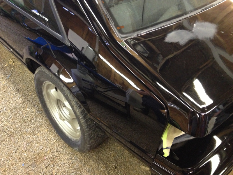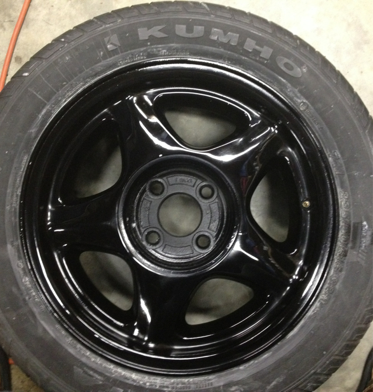 After a brief pause on working on the car so life could move on I'm back at it. I've tossed around the idea of polishing the original pony wheels but have decide that that would be a lot of work and effort put into a set of wheels that will be useless when I change the car over to five lugs. So I've decided to paint them gloss black and run them until I no longer need them.
