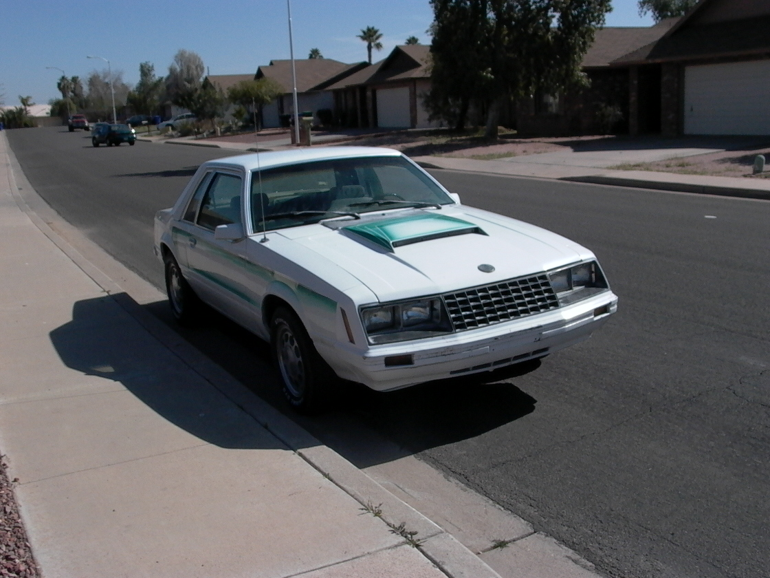 Not feeling the green, but nice nevertheless. Another 4cyl. '79, huh? Matching "Pace Car" notch... Need to find a T-bird TC or SVO engine for it! I love the possibilities offered by the Foxes.