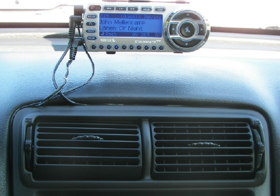 Here's my Sirius Satallite radio. The '00 model year was really favorable for hiding all the wiring, I think. I hid the antenna wire from the roof underneath the windown molding outside the car to the trunk. Then through the trunk, inbetween the seat and the interior paneling.