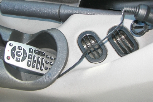 I also added an FM modulator, which cuts off the car antenna and directly feeds from the satallite antenna (HUGE difference, the only way to go, in my opinion). I ran this from behind the radio, and in the seam up the right hand side of the center console (opposite of the antenna and power lines.