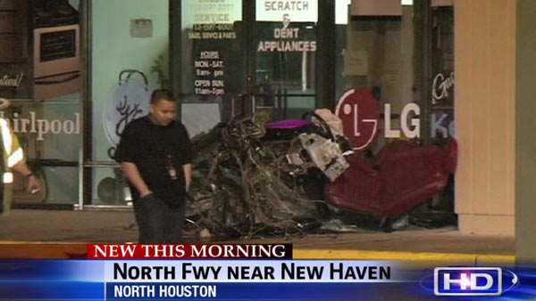 The impact shredded the car, sending the engine in one direction, the seats in another direction and the shell of the car in a third direction. The man driving the car slid in his seat across the parking lot. The woman riding with him was also thrown out of the car. Amazingly, they were not seriously injured. Police tell us the driver had been drinking.