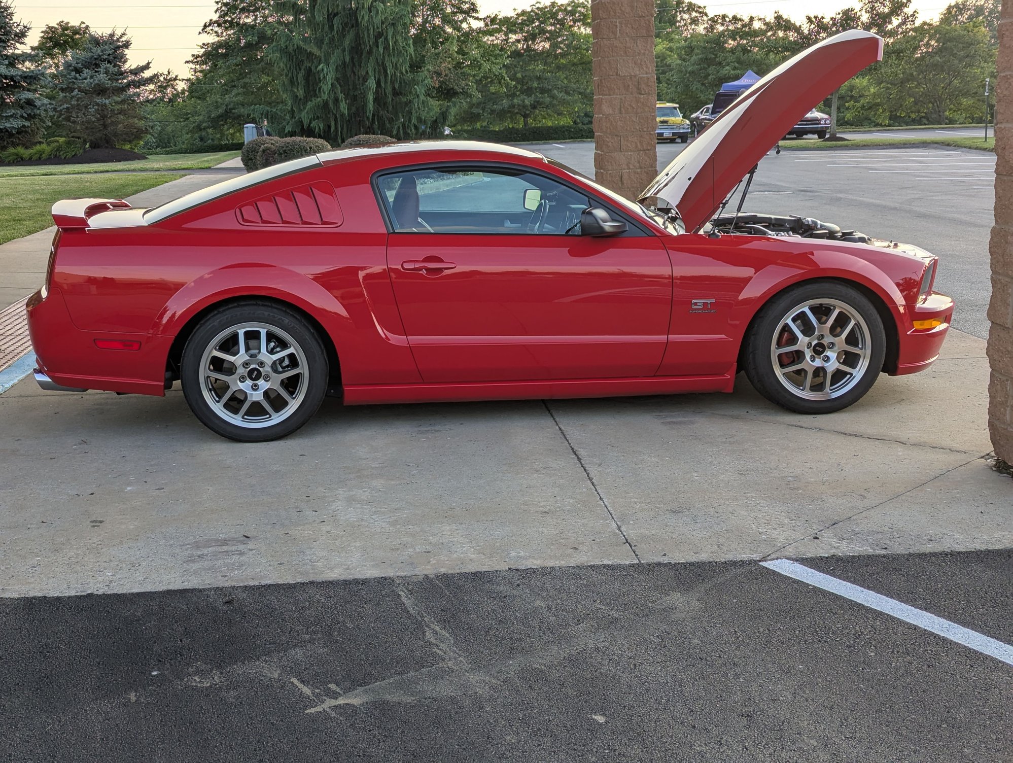 Side profile of my good friend's 2008 Shelby GT500 Super Snake Front profile of my good friend's 2008 Shelby GT500 Super Snake alongside my 2006 Torch Red GT Premium Rear profile of my good friend's 2008 Shelby GT500 Super Snake