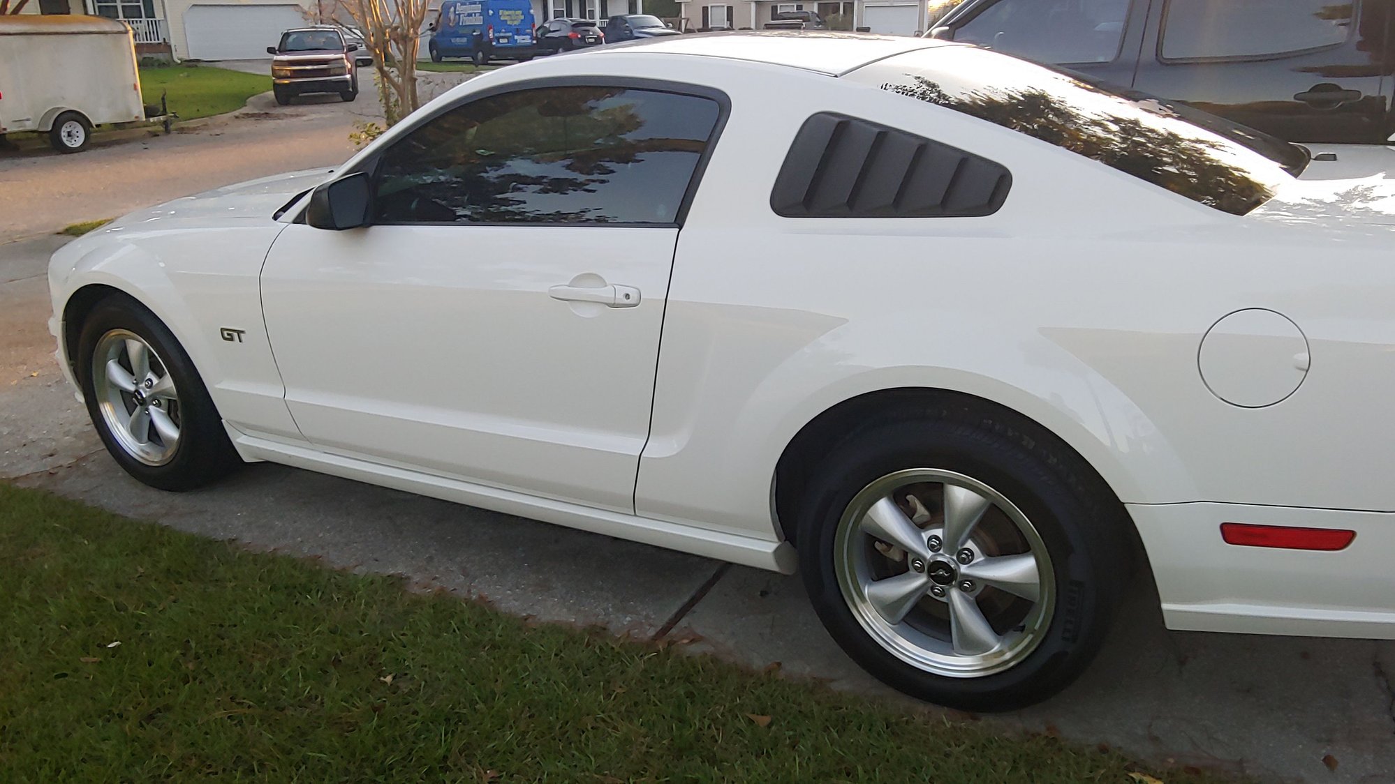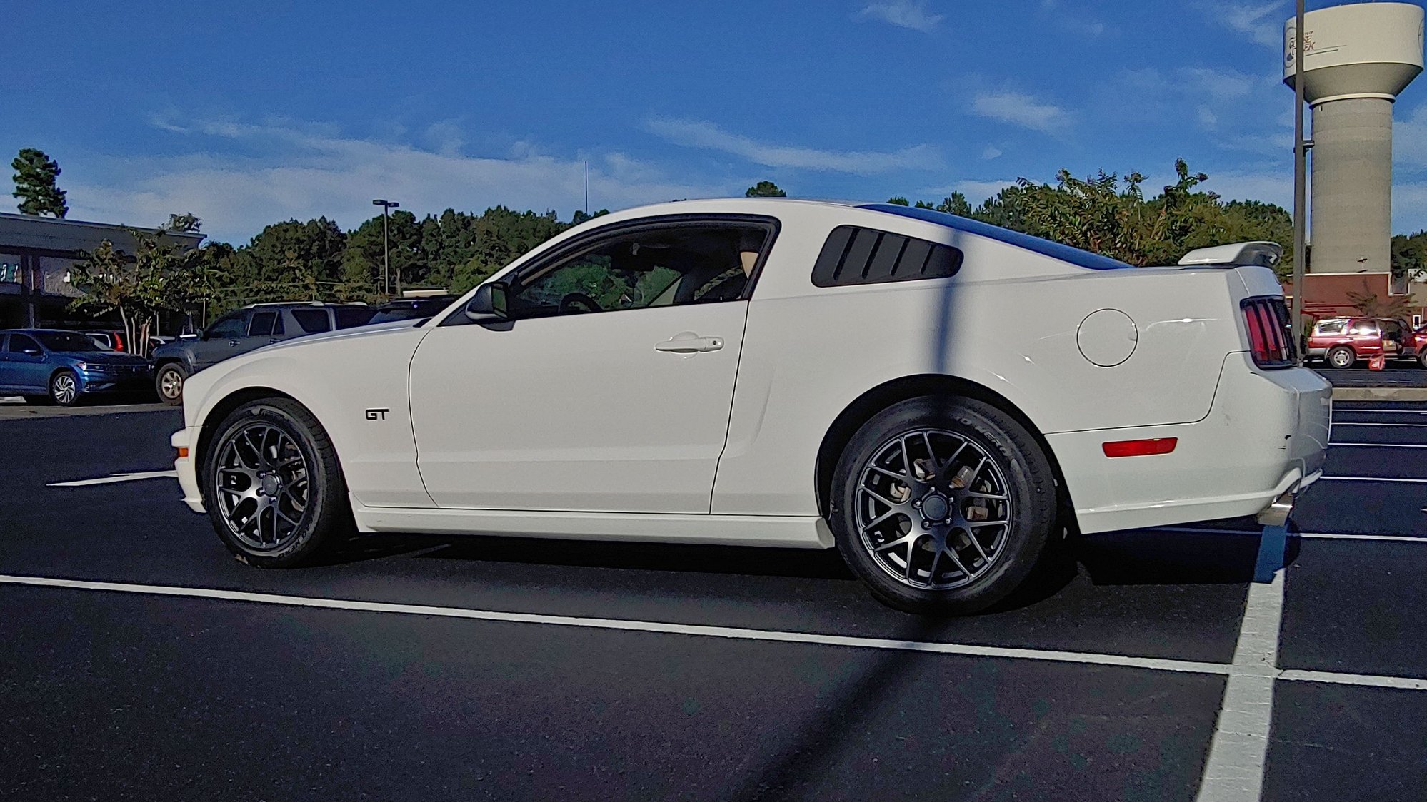 I had the 14 wheels on for a couple days and actually liked them, and the couple times I went thru the car wash, they are easy to clean I gotta admit. There is some minor curb rash on 2 of them, and numerous chips in the paint, so my plan was to get them fixed and resprayed, then get tires for on them as a backup set. And if I get tired of cleaning the other ones, might be a good enough reason for a break also. Next brake job will be to ceramic pads to cut down on the dust. The factory bullitts are in great shape, but I just don't have the room to store everything, as I also have a set of wheels for my Tacoma with all terrains on them. If you hear of anyone needing/wanting a great set of factory bullitts in silver 17x8, tell them to contact me. I like the way you think houtex.