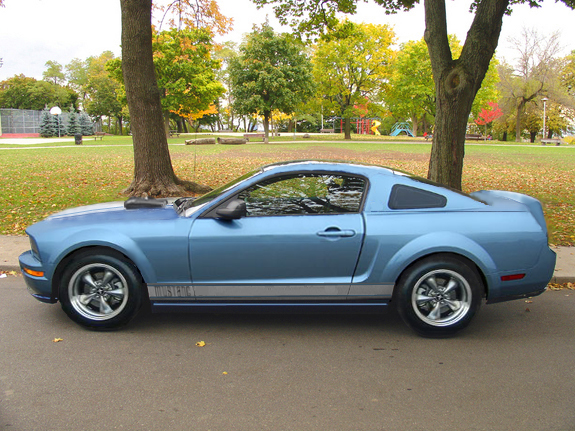 Here's a new one from the Fangperformance.com website (top/left). Here are a couple that I photoshoped a while ago (bottom/right). I always liked the look of the silver stripes on a WBlue stang.