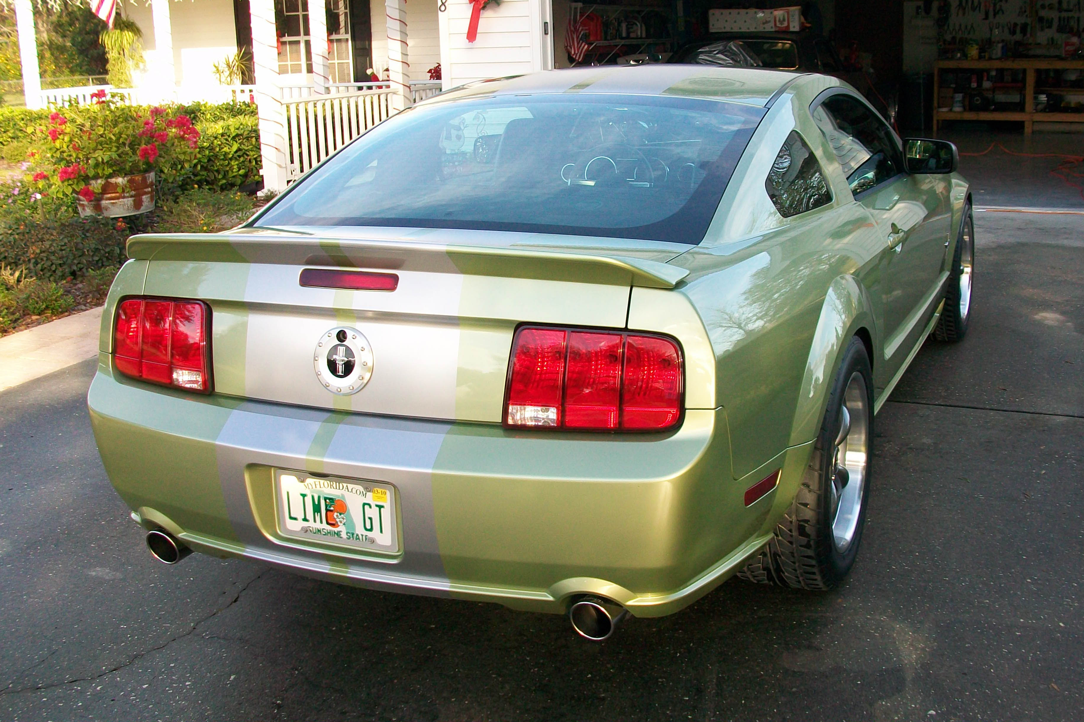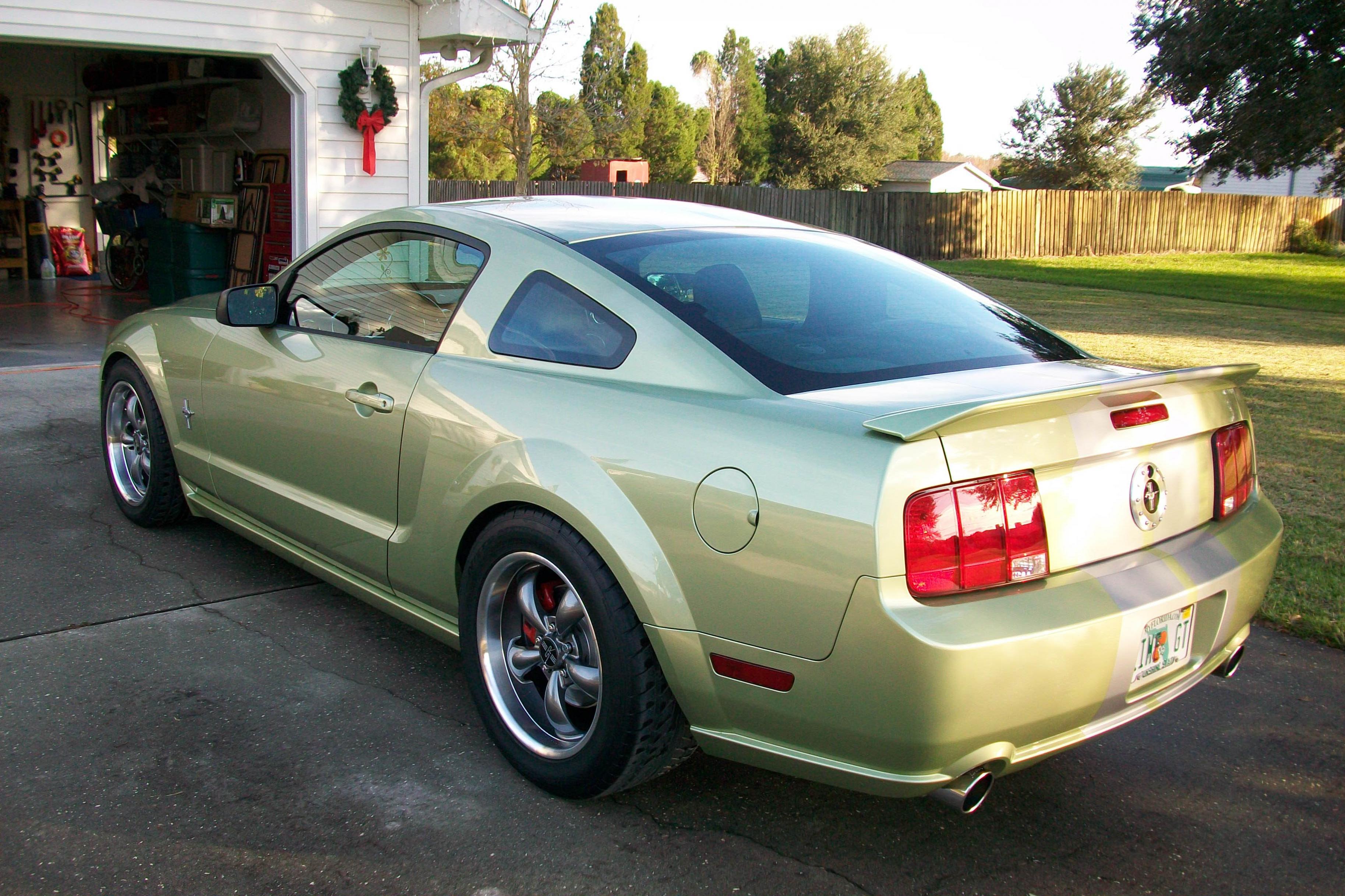 First was 18x9 and 18x10 deep dish anthracite bullitt wheels from American Muscle. They were mated locally to Nitto 555s in 295/45 and 255/45 sizes. Man those 295s are big! (See comp photo.) Also ordered from AM were FRPP 4.10 gears. The gears were installed by ProFab in Thonotossassa, FL near Tampa. Great guys, thanks Matt and Dave! They also installed a BMR adjustable panhard bar while doing the gears. They gave me a great deal on the bar and didn't charge me to intall it (the old one had to come off anyway for the gear install). Next up is the Legend front splitter from Silver Horse Racing. It was a little expensive, but it is a very nice piece and what I wanted. And lastly, the GT500 spoiler painted and shipped for only $120 from the spoiler store on Ebay.