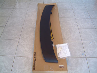 The wing arrived as scheduled and I am very happy with the quality of the paint job. This thing looks nice and it's packaged nicely to protect it during transit. You can see from the pictures that there's a thick outer layer of bubble-wrap and also an inner layer of a foam wrapping. Included are installation instuctions, hardware for those that don't have a wing at all, and some foam pads that fit between the wing and trunk. Here are some pics of the wing as we unpacked it and inspected it here at Ninosport. We are very confident that everyone looking for the Boss302 or Mach1 retro look will love this wing. We will announce pricing and add it to our web store tomorrow. Initially this will be classified as a Special Order item so there is a 3 day lead time to ship it. Judging from the response we've gotten on this forum and over the phone we expect a healthy stream of sales.