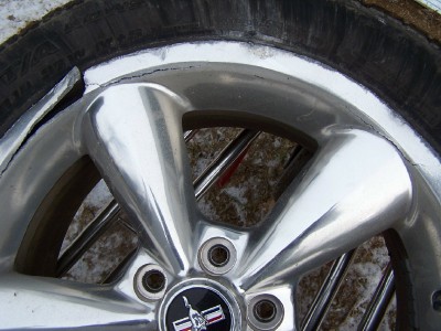 Fortunately(I guess)it was the rear wheel. When my stang started to come around, I (over)corrected for the slide, it caught, shot towards the curb, I hit the gas and spun it into the curb wth the rear end. I'm hoping to find it on Ebay soon.