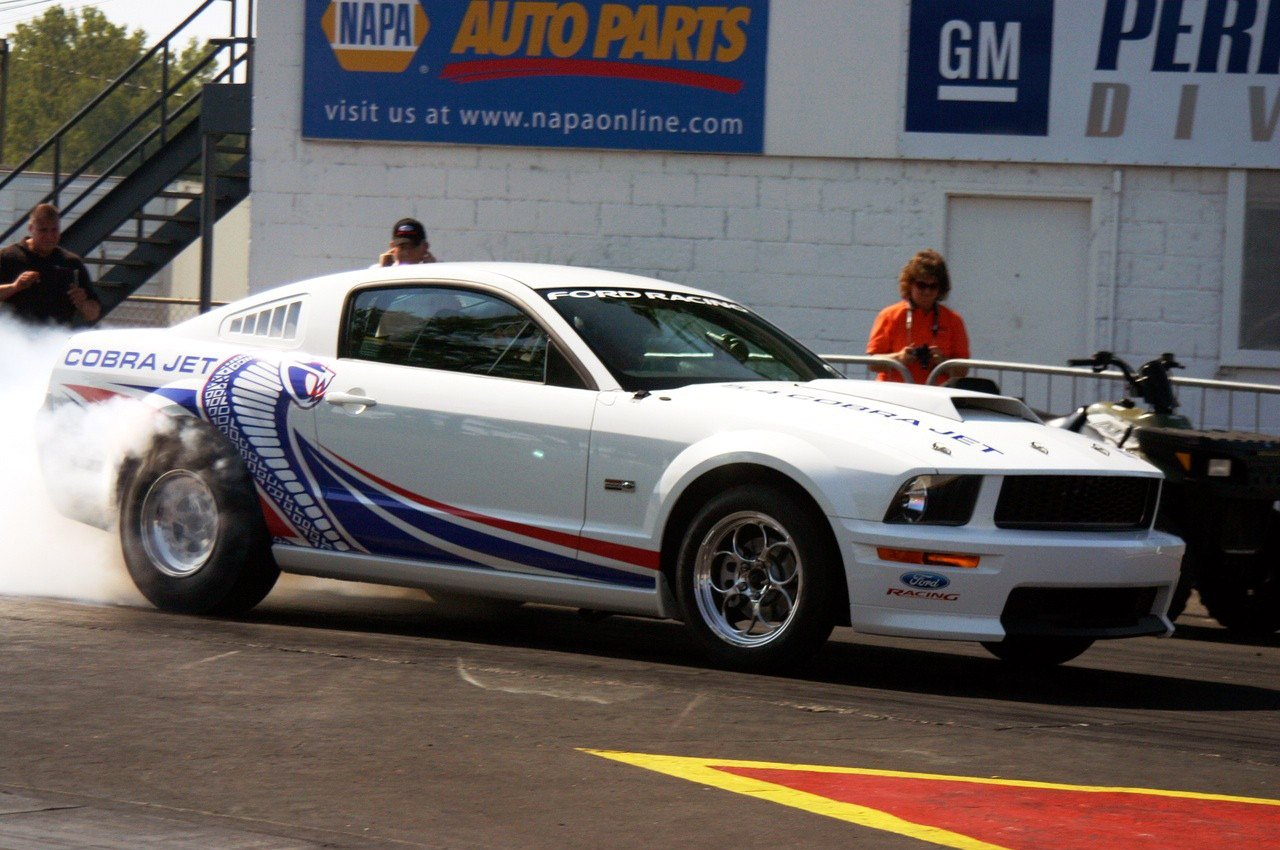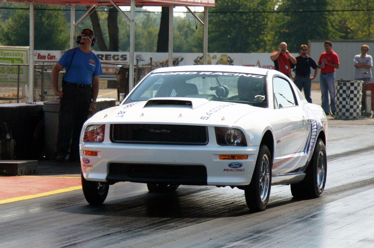 430 hp supercharged 5.4 from the GT500. Its rated at 430 hp dues to NHRA class weight vs. hp ratio.. 6 speed trans with an automatic offered possibly. Its a base GT body so its the lightest Mustang out there. Comes with no interior but seats and a roll cage optional.