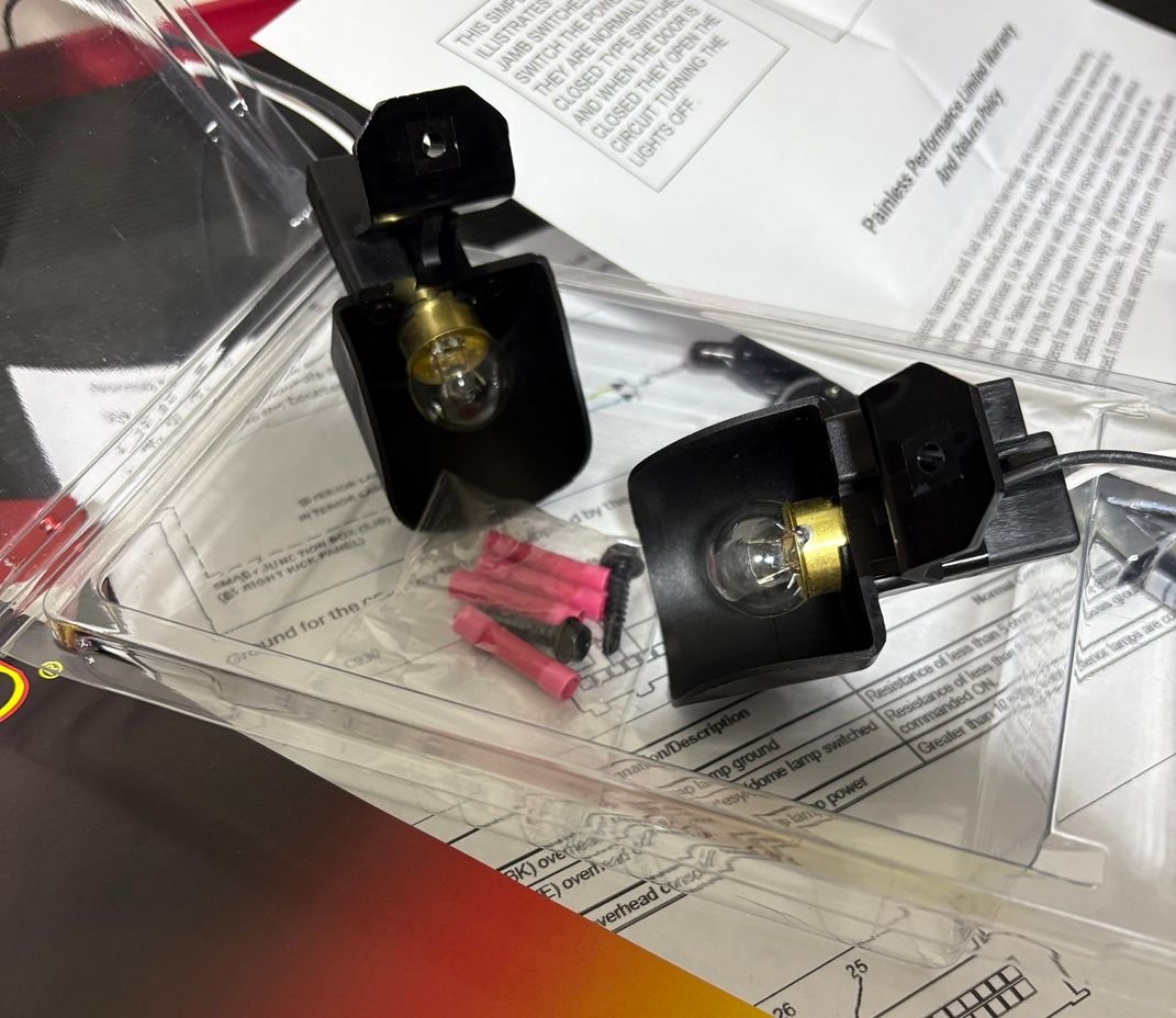 So the lights came in. They are a tad larger than they looked, very well made. I bought these a few years ago for my 64 C10 build, these new ones are better made and black like you see here. Wires are 58" inches long and fit nicely in a 1/4" split conduit. I tested both of them on my battery to ensure they worked. The holes are big enough for a #6 machine screw but not a 4MM. More to come.