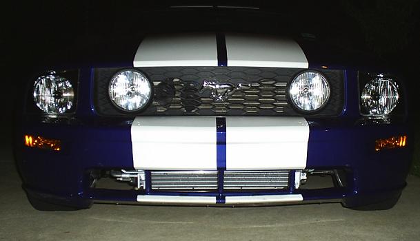 I have had my car since December of 2004. Not too many mods or anything since it's my daily driver but I feel it looks good for what I spent on my mods and the look I was going for. The color combo was inspired by the Corvette Gran Sport. (blue, white stripe, black wheels with silver lip). First I got the stripes put on for about $500.00. Then I lowered the car with Eibach Sport Line springs. For exhaust, I unbolted the stock mufflers and ran straight pipes with exhaust clamps, so I can install my stock muffs if needed. Next I painted my stock wheels (black wheel paint from Auto Zone and sanding down paint area with 1000 grit), wile leaving the lip silver. I also removed the lower bumper grill for better air flow and painted the A/C condensor with high temp aluminum spray paint. Also, relocated the horns for better air flow to the radiator. I played around with the stereo a little and had an 18" sub I custom built for my car but went with a few 12's after blowing two 18's in a 4 months time (Don't buy Pyle speakers). The 18" was a show stopper but didn't last. Now I am hitting 133dB with my two 12" Sony Xplods while maintaining a stock stereo look. Oh well.... enjoy