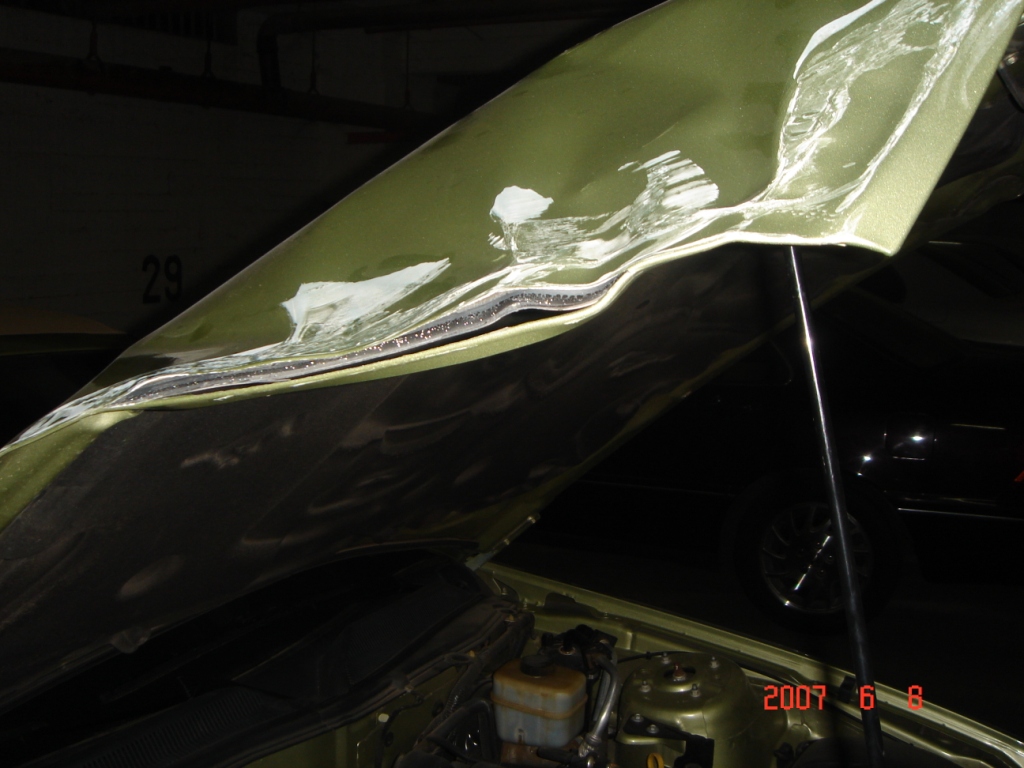 i feel sick.mainly about your car, thats a shame to happen to a mustang...glad your alright though, at least it was the front pass fender and not the door...but....my baby got dented on the passenger side rear 1/4 on the lip of the fender,last night, and i seen it happen some kids in a beat up black honda, come flyin next to it and park swing the door open and BOOM! he closed the door looked at his friends, they all laughed and took off...i almost chased him down but a speeding ticket would have made things worse