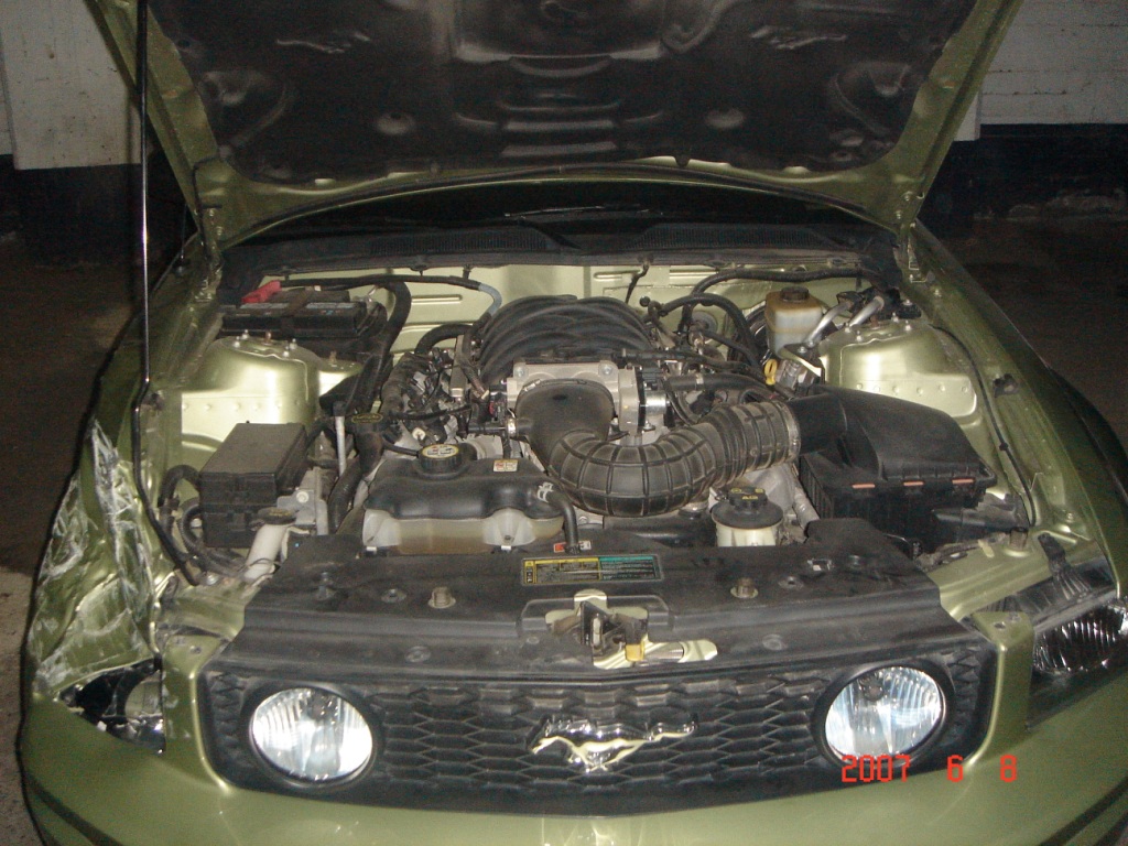 To give you and idea this is $12.000 in damage. yea you have more than body damage, but still a good time to do some up grades... either Shelby or CS front end, new hood, HID's, IF the radiatior was damaged up grade that to a larger one. All the parts that have to be replaced, if you supply them, the dealer should give you back what the factory part costs.
