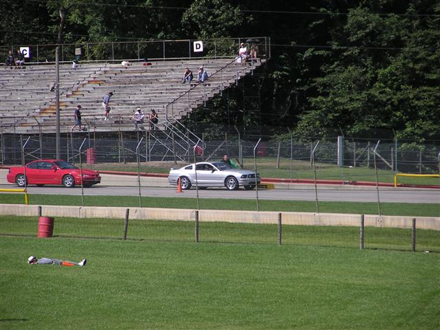 The in car video is taken in a 91 Fox with a 306 and road race suspension (which you can spot in the other post picture in the back ground). In the beginning of the video, you will see a red 911 pass on the left, I was right behind the Porsche in my Silver 06 GT and I ran door to door with the camera car for three corners until I finally outbraked him in turn 9. Then we both got blown away by a red Cobra. Great fun, enjoy!