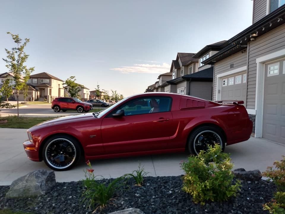 After previously owning an 89 LX 5.0, and a 2000 GT, I've recently purchased this 2005 GT with 29,000kms (approx. 18,000 miles). The car has a Vortech V2 with power cooler, Cobra blue giant injectors and an upgraded fuel pump. It is sitting on 20" Niche wheels with 255/35/20s in the front, and 295/30/20s in the rear.