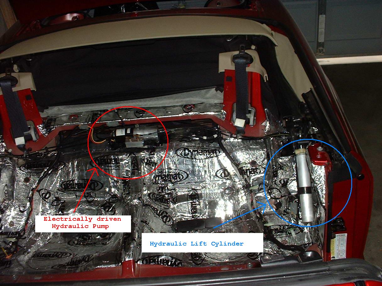 Hmmm. Not sure what you are talking about. As shown in the pic, the top is electrically controlled and hydraulically actuated. The components are not very heavy, and the only part over the rear axle is the pump. Just FYI.