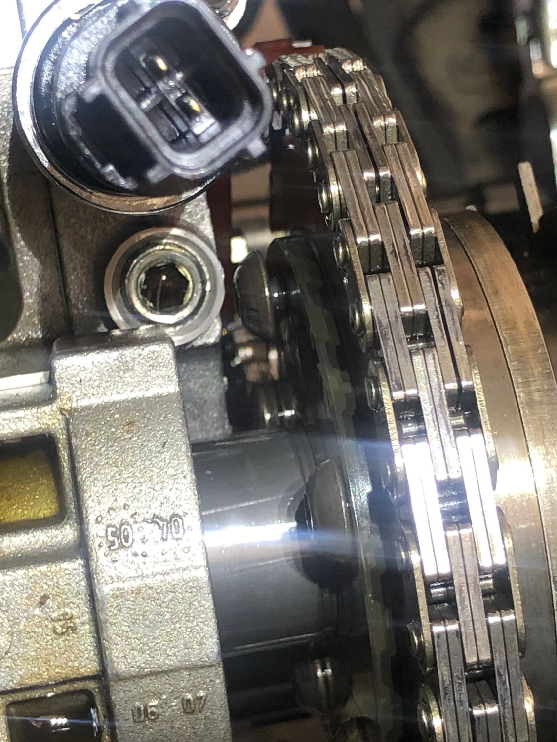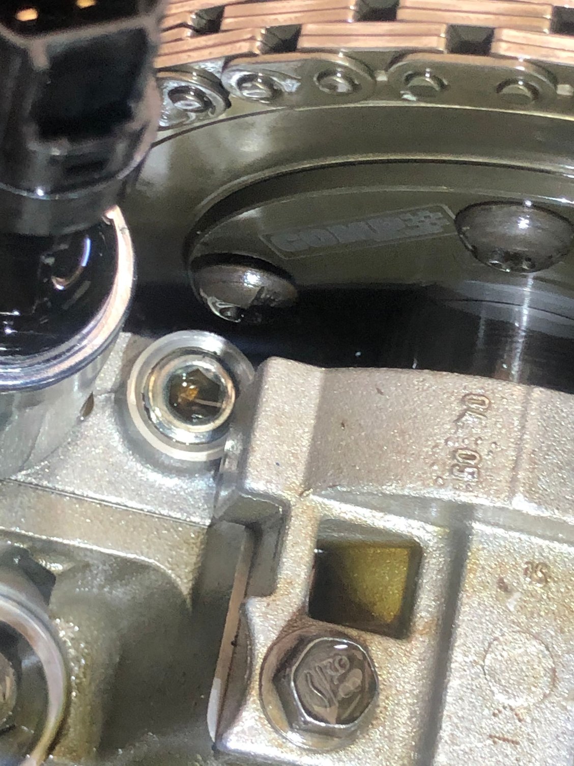 I didn’t mention that I was gettin a random cam code before but since I got it to pass I figured I chase it down. Pulled the front cover this morning to check everything 1st hand an everything looked good other than the front seal an cover gasket. Was jamming to music but a few times I could have sworn I heard a noise from bank 1, finally I turned down the music an gave a good listen an WTF a bolt backing out the rear of the phaser!!!! Guess I’ll head to the dealer an grab a new set