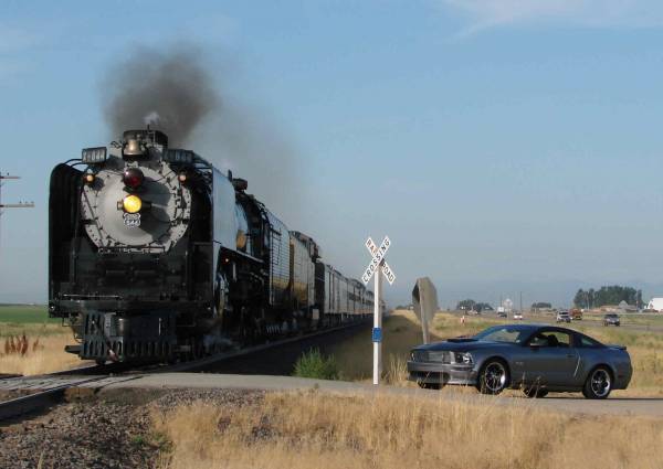 That is Union Pacific 844, a northern type (FEF-3) More information can be found at www.upsteam.com. I hope to get some shots with my updated car, with UP 3985, the LARGER locomotive!