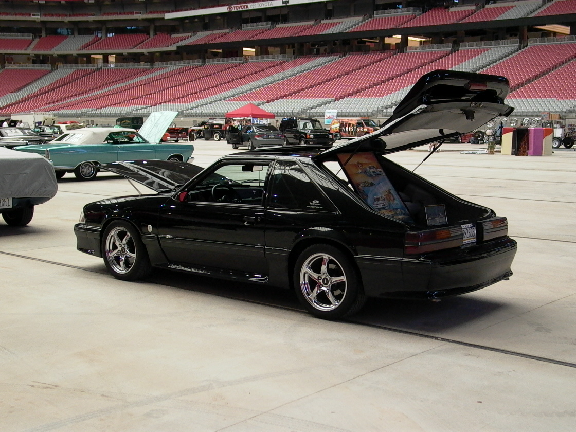 I was at the show over the weekend, our club had a booth there and I think more people wouldd have come if it were not so dam expensive to get in!! I agree $14 a pop and a small fortune to get a drink and snack!! But here you go flashfearless is a picture of Alice in front of my 89 GT!!! By the way he owns 3 Stangs!!!!