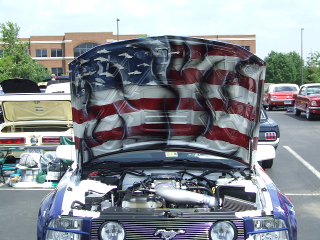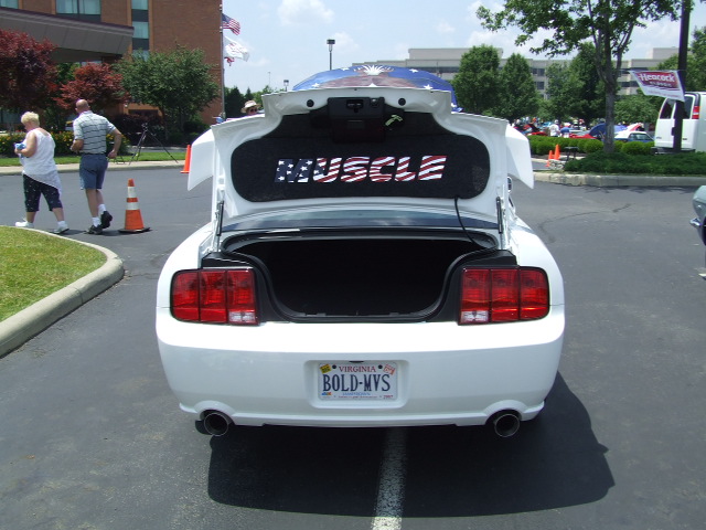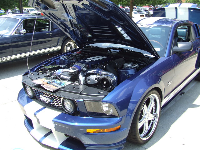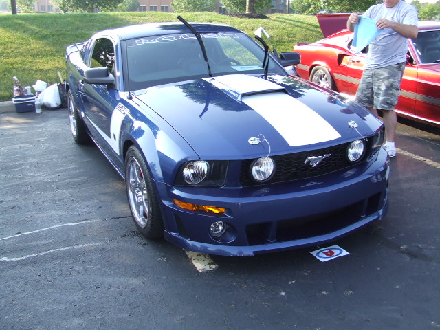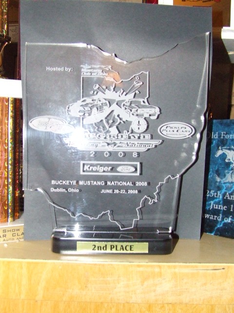 I think I got beat out by a Hosting Club members Vapor Grey Shelby GT 500 Vert and I tied a mostly stock Blue GT Vert that was owned by a MCA Board Member. Third place was a Parnelli Jones Saleen. Non winners included 2 Red Shelby GT500's, a white Shelby GT and 2 other California Specials and about 10 more GT's and V-6's. There was a stage 3 Blue Roush in my class and I didn't see him called for a plaque but later I saw him carrying one????