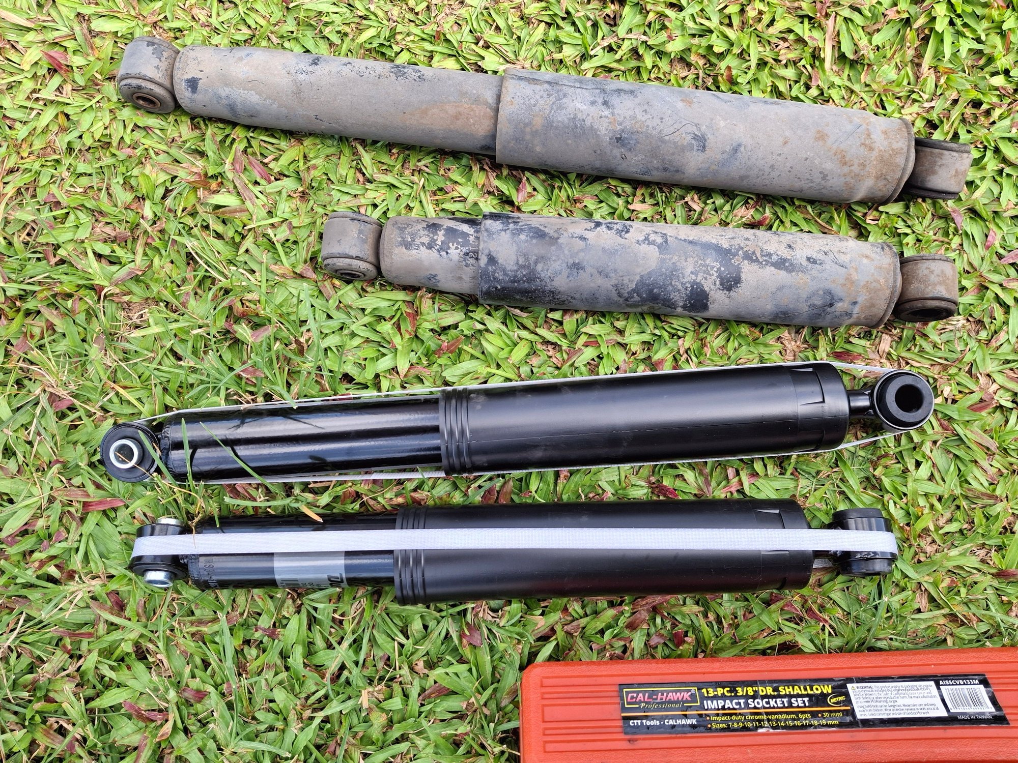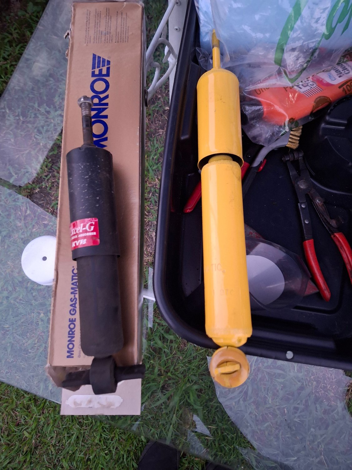 Diferential outer bearings were replaced a month ago. That's when I noticed the right brake drum & shoes were toast. The wire thing that held the band adjuster snapped and caused that wheel to drag the brake shoes very tight, destroying them. I just replaced the adjuster parts to drive the truck to work. Last Friday the left brake cylinder started leaking. After adding half a bottle of brake fluid, I made it home. So all those parts will be replaced now.