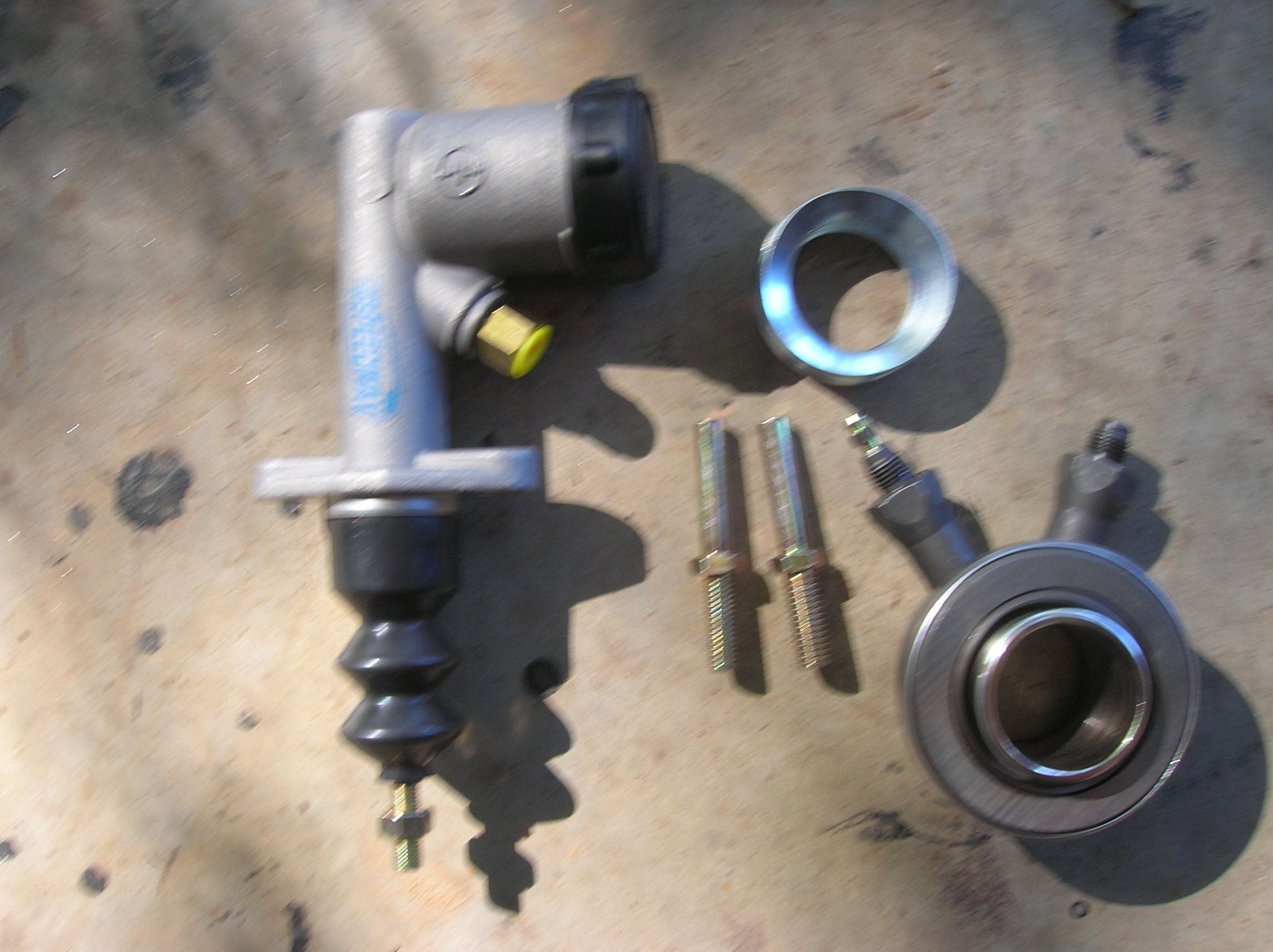 finally remembered how to add a picture from my camera .. got to write it down i guess .. i have the hydraulic master cylinder mounted and i think it is correct .. i have not put things back together yet as i have having an issue with the throw out bearing clearance .. it is suggested that there be 1/8 th inch spacing between the bearing face and the pressure plate fingers and they give you a ton of spacers to set the gap with .. well i dont have a gap to begin with .. everything is too tight .. i am having to fabricate trans spacers to back the trans off a bit .. i bought a fluid feed line but have to get the bleeder line ... just dragging my feet .. dreading how i am going to get the trans back up into place ..and not feeling well most of the time does`nt help ..
