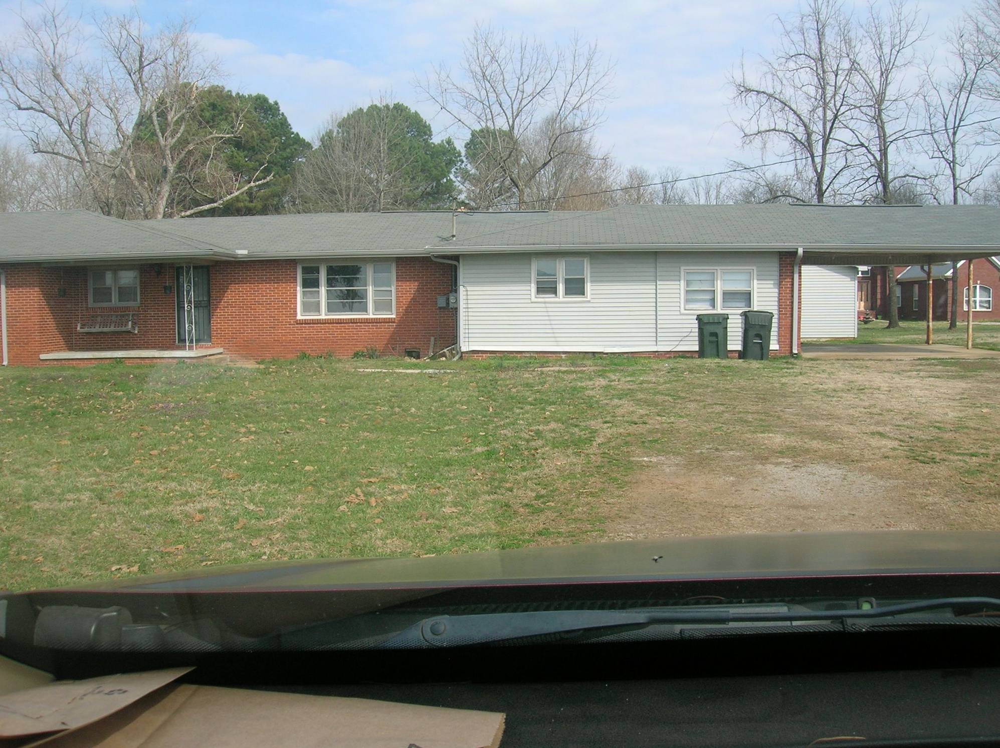 here is a shot of the house .. i think the car is behind one of the white boarded up sections as the open ends have been added later .. the house seems empty ..