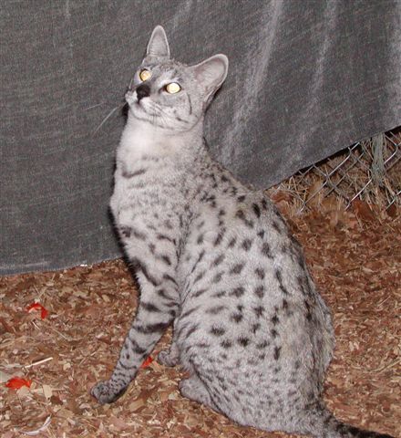 My old cat Kylee, she was an F2 Savannah (half african serval half egyptian mau? i think it was). Best cat ever. And would dang near knock you out when she headbutted you. She was a breeder cat prior to us getting her, thats why theres a studio pic lol.