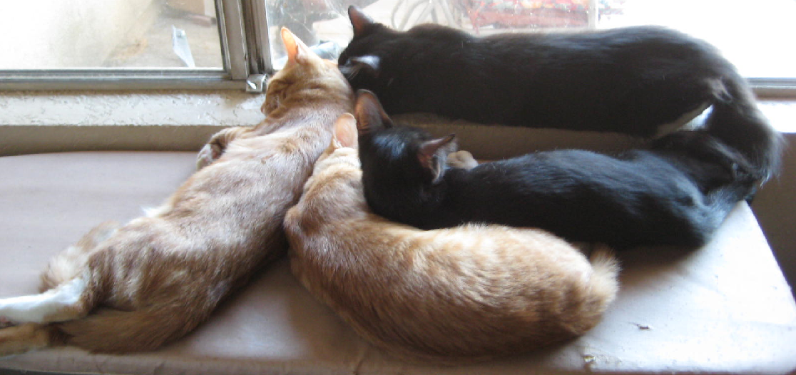 Well Our Kitty Family is Growing With Another Ferrel Young Mom With Three Little Tuxedo Kittens. Raised Wild & Not Used To Humans Best I can Do For Them is Some Food & Water At a Distance. Due To Ants Everywhere I Have To Put Food In a Bowl in a Water Filled Bowl To Keep Them at Bay! Working on Getting Them Closer To House in an Ant Proof Setup. Just Takes a Little Time. Dad is a Charlie Chaplin Moustached Little Dude Who We Believe is Our House Kittys Dad as Well. He Cats Around!