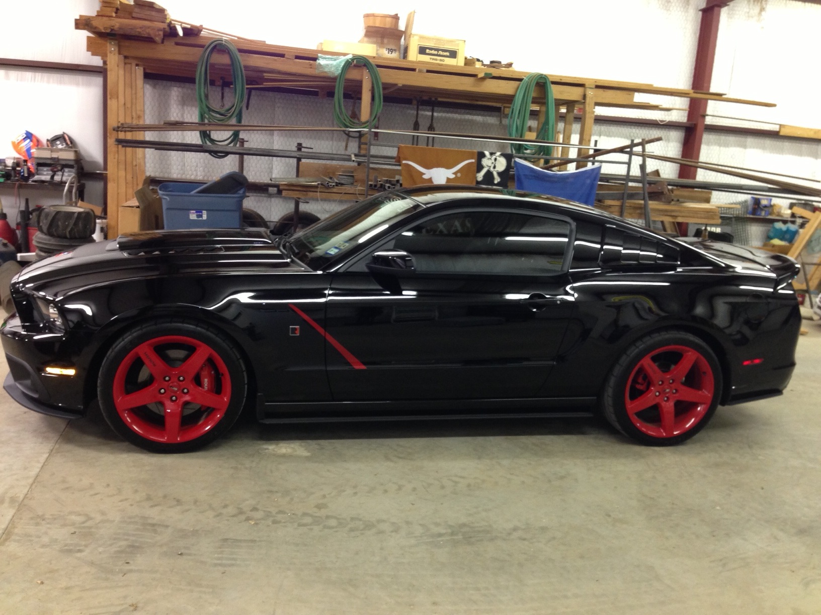 Ive only seen the red rims online browsing around, and didn't see any on a Stang. I also haven't seen anything close to it around where I live or any places I have been, but I give it six months and I'll see them everywhere.