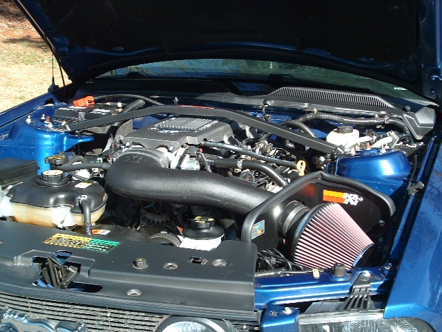 Hoping I can post these.....2006 Mustang GT in Vista Blue. I have added the grill-inserts, K&N CAI, MagnaFlow exhaust, BMR Strut-brace and FRRP hood-cover. It runs on Continental DWS tires.