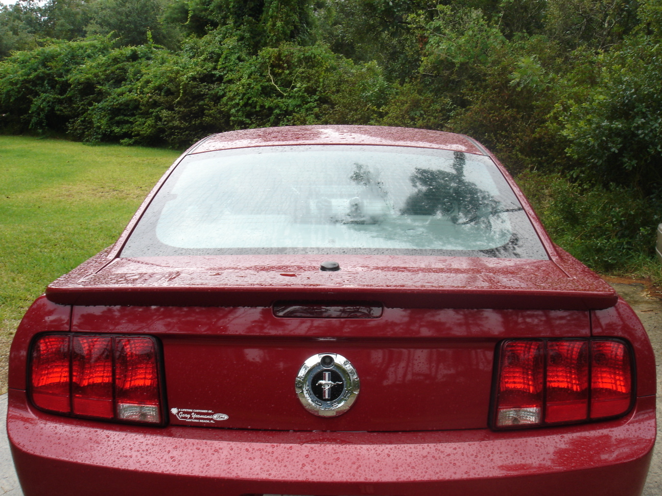 Guess I'm a little slow on the uptake here also. "Sunny" Florida. Just noticed the RAIN all over your DCAR. Just so you know your not alone, It's pouring over here on this coast right now also. I really can't complain, I've been mowing a hay field for months, now it's finally turning green again. Oh, and now trhat your an Official Floridian Mustang Owner; Two things. (1) START THE MODS, SilverhorseRacing.com over on your coast is the best place to start; and (2) that dealer sticker has got to go.