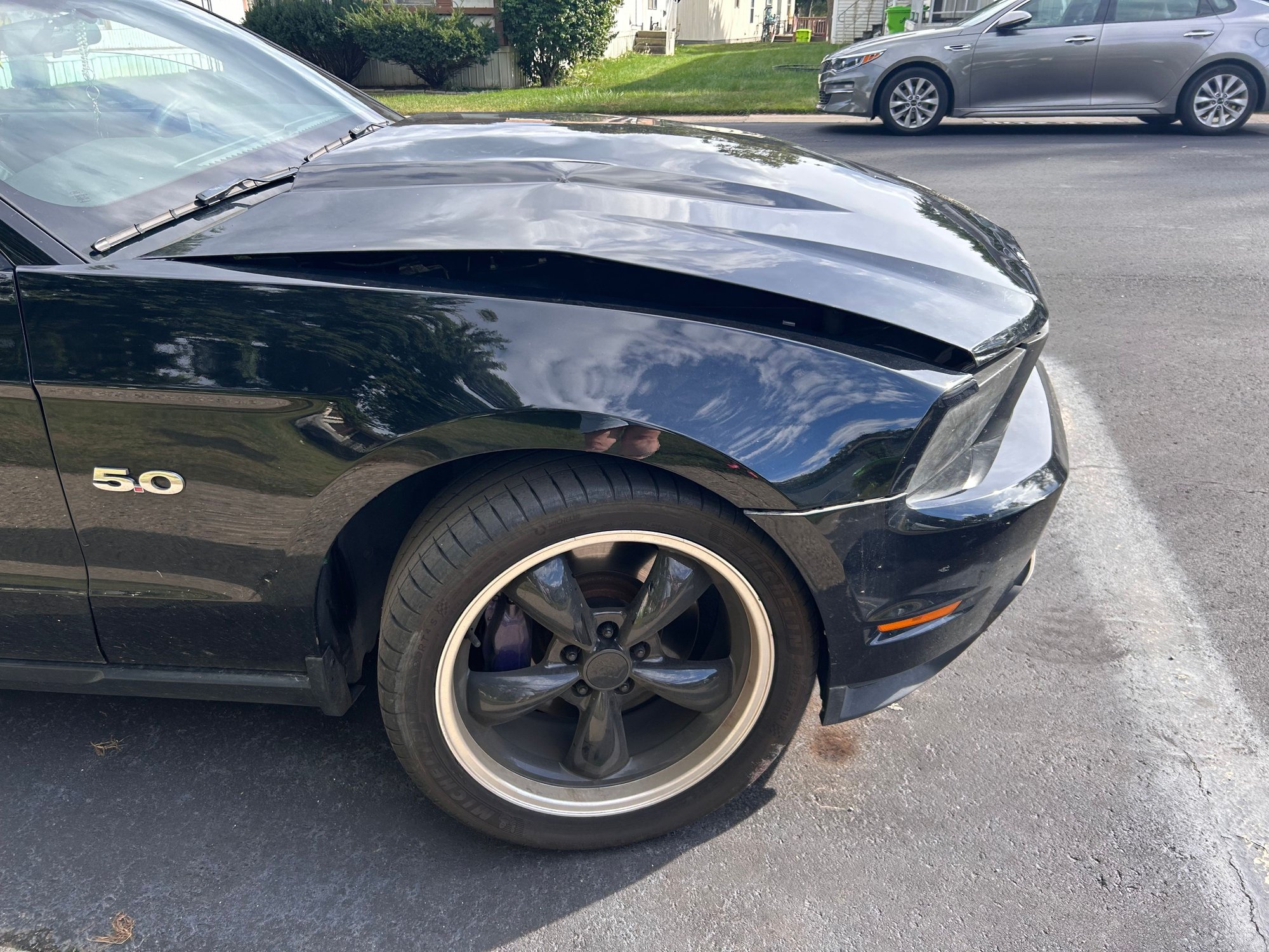 Although, I can surely understand how you must be feeling about the damages to your Mustang shortly after becoming the new owner, your vehicle insurance should be able to locate replacement parts for the hood and front valance for you...