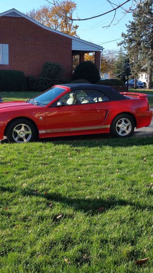 Just wanted to say hello to everyone. This is my 2004 Ford Mustang convertible 3.9 Colorado red with its new black top. It's also an official 40th anniversary edition and the only reason why I say official it's because of the VIN number. |