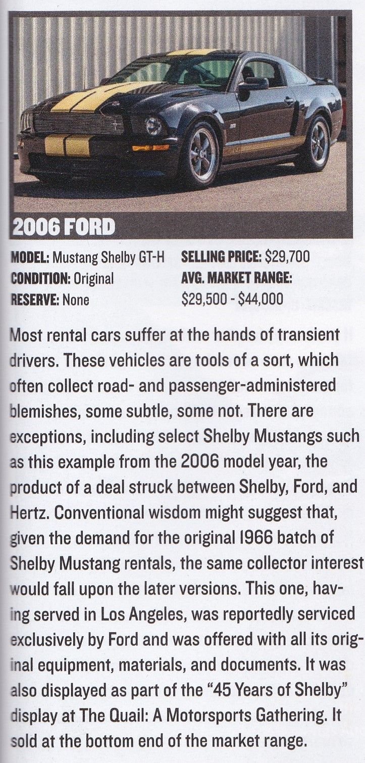 Perhaps the reason they're not bringing in good money, is the majority of those 2006 Shelby GT-H cars were probably abused at the track when they were still rental cars.. Anyhow, just a guess on my part