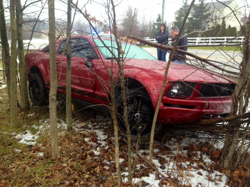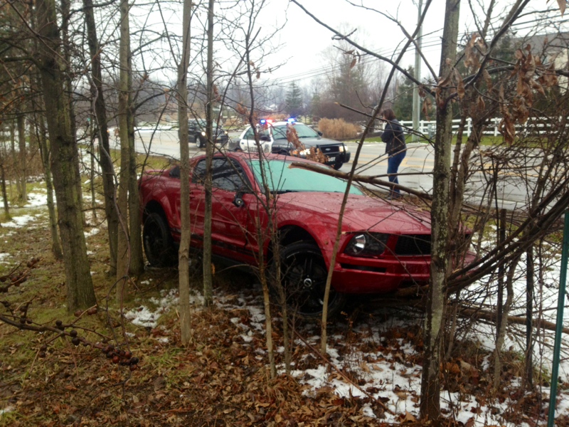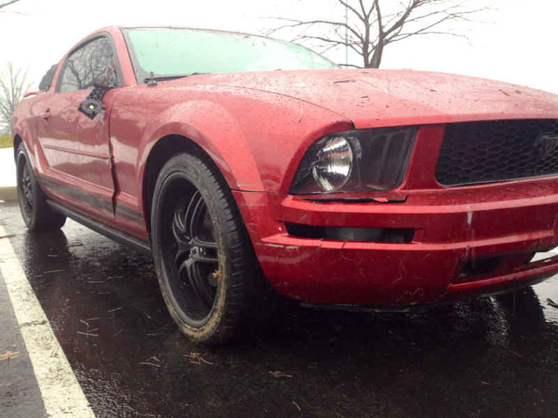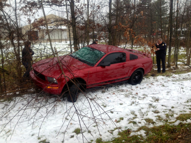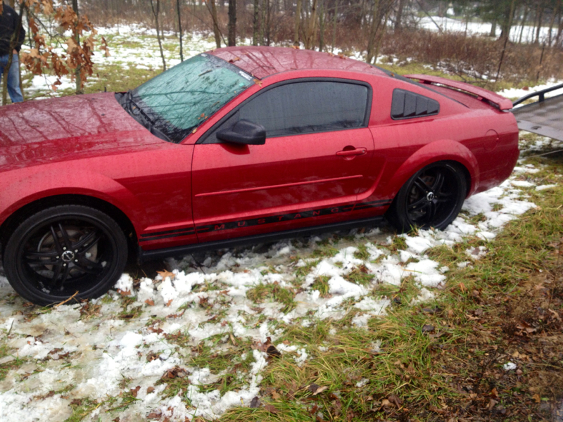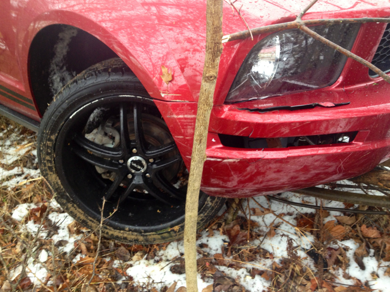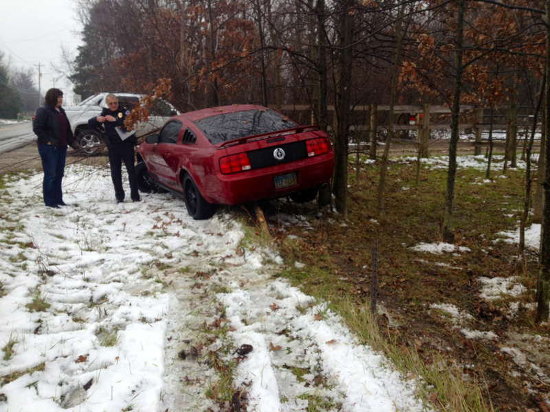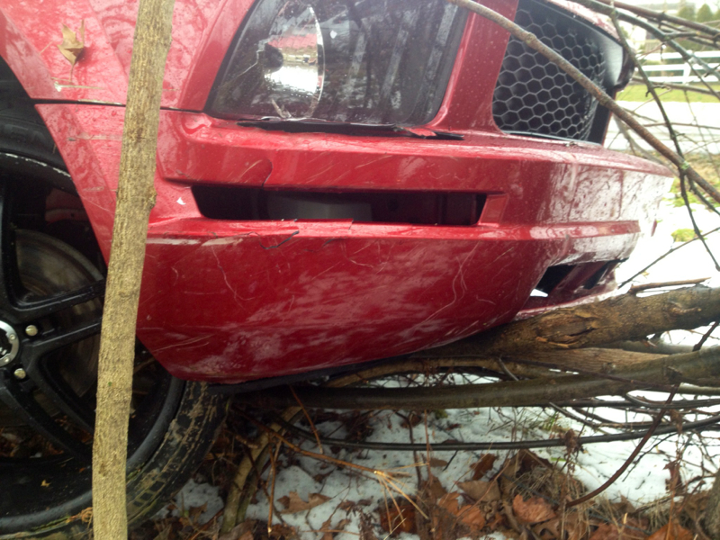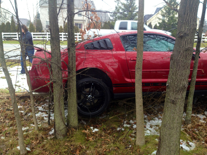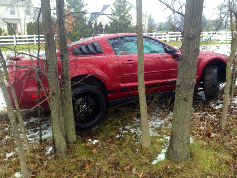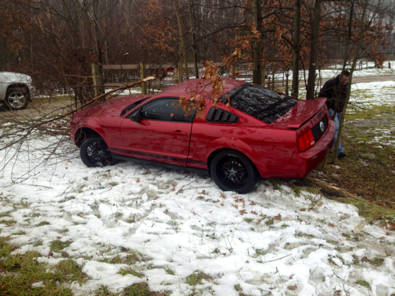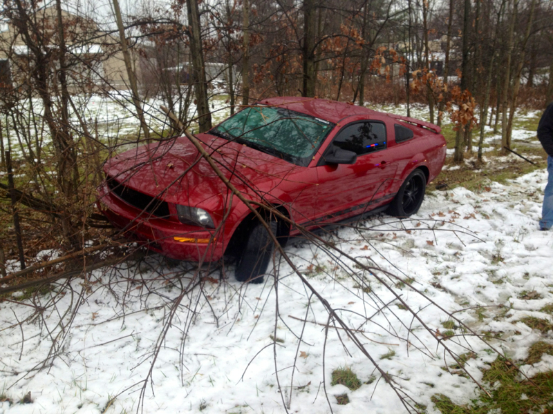 Got in my first accident today . Roads were slick with ice and I slid right off the right side . Gotta love RWD .