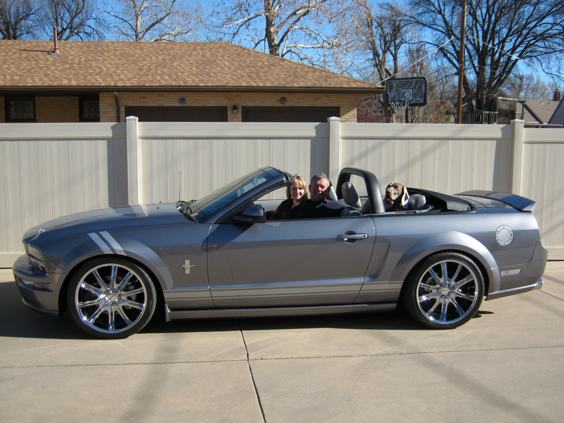 Here's the picture we used for our Xmas photo card - my wife, myself, and our Weimaraner Lizzie sitting in our Kenne Belle Suprcharged 2006 GT 'vert. Happy Holidays!!