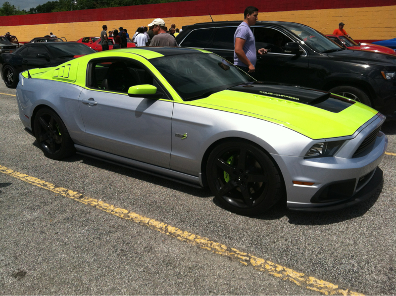 So I was hanging out at the track today, Orlando Speedworld Dragway. Just watching, no passes today. And I spotted a new Roush. Earlier last week I had read about a RS3 Phase 3, aluminator block, bigger blower, 675hp. Well this was it. This thing was sick. It had a Michigan plate that said "manufacturer" at the bottom. When I was talking to the guy he said it was a test car and made 585 at the tire. The first pass he made he spun through 1st and 2nd and still nailed a 12.30 on 275 street tires. He said it had too much gear (4.56) because the nose was dropping before he redlined. The second pass was much better, longer burnout and made an 11.80. That thing was nasty.