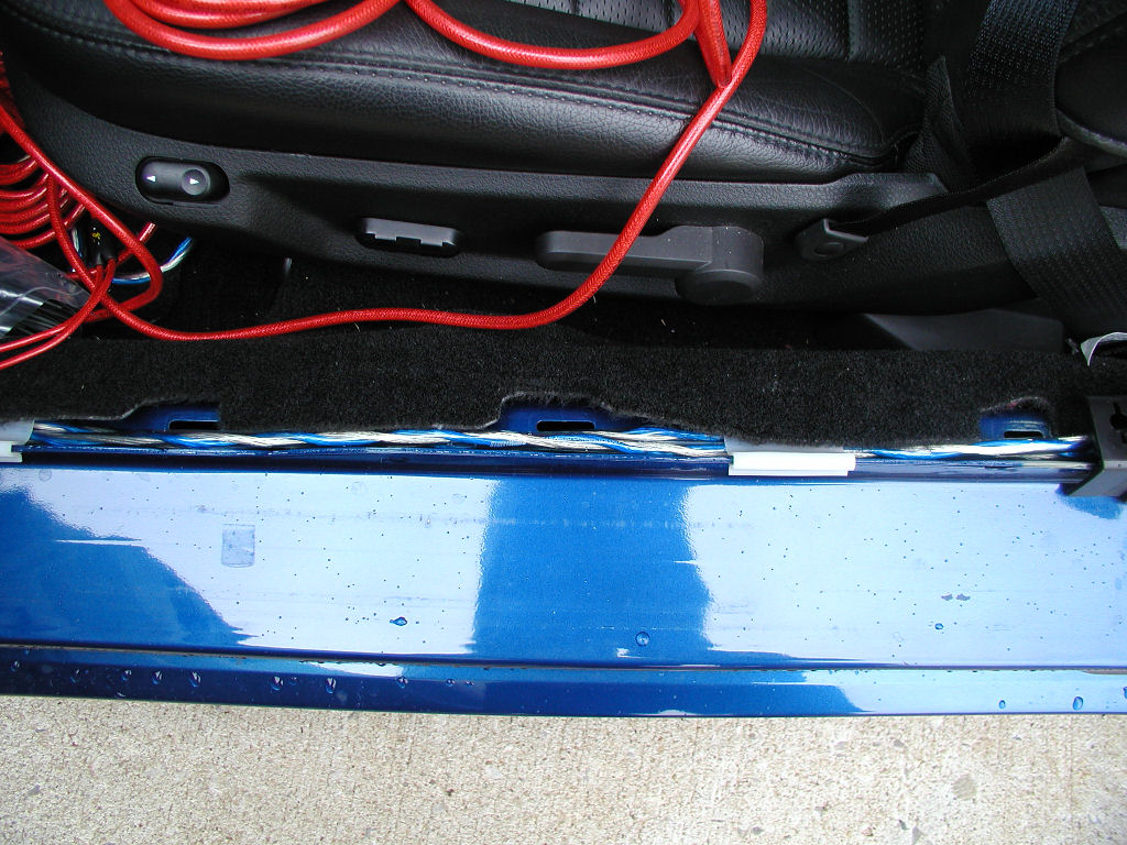Yesterday I got the Speaker wire and RCAs ran down the Driver's Side to the trunk area. Was a tight fit running 2 RCAs (1 x 2 Channel and 1 x 4 Channel) and 2 x 12ga Twisted Pair Speaker Wire under the door sill, but I made it work