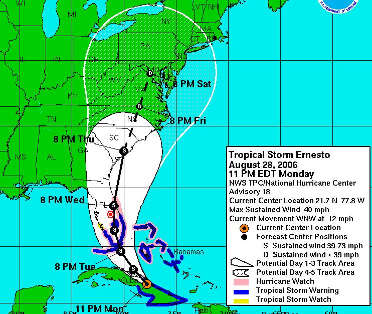 Well, here's the latest on ERNESTO. Mike and I are approximately where the bullseye is: