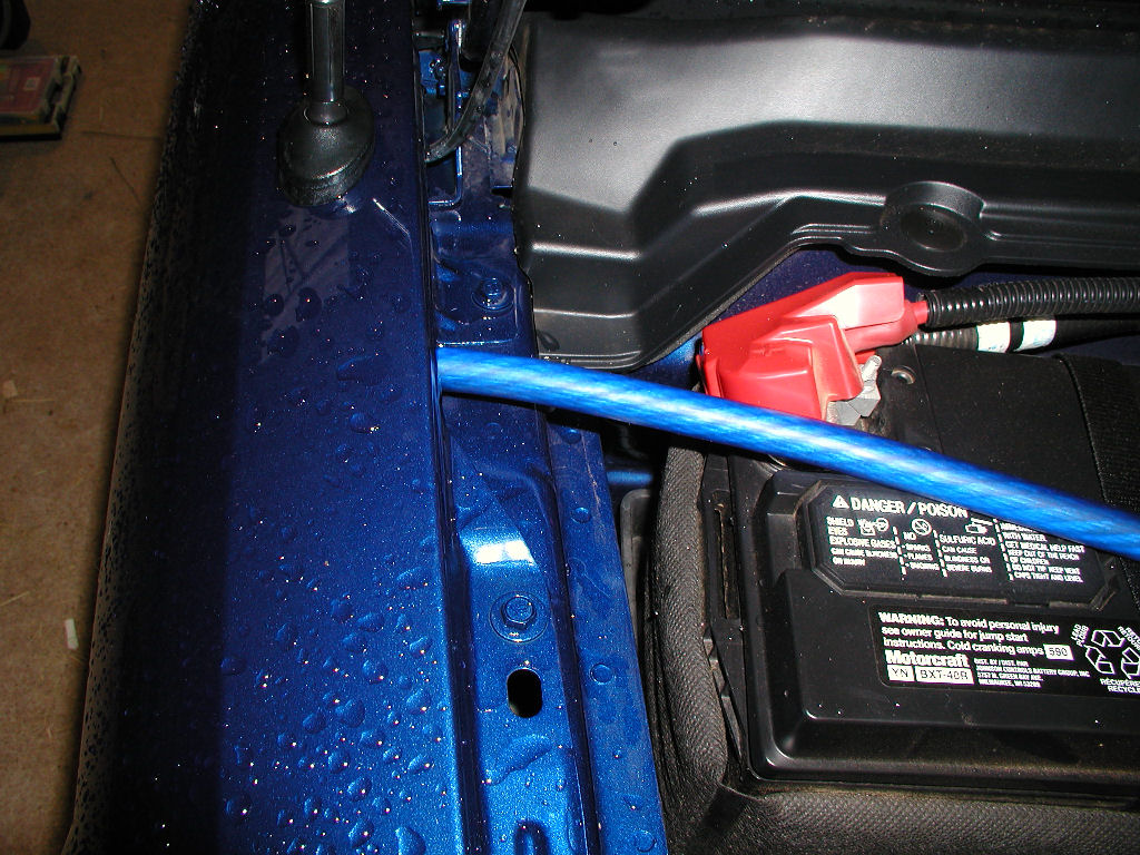 Ran the power wire down the passenger side & wire through the firewall nipple, into the Engine Bay.
