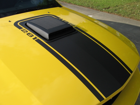 Below are some pics of the stripe package that I'll hopefully be getting this week. Which one do you guys think looks better the way the yellow stang has them or the black one???