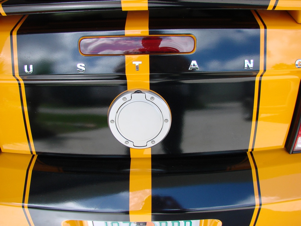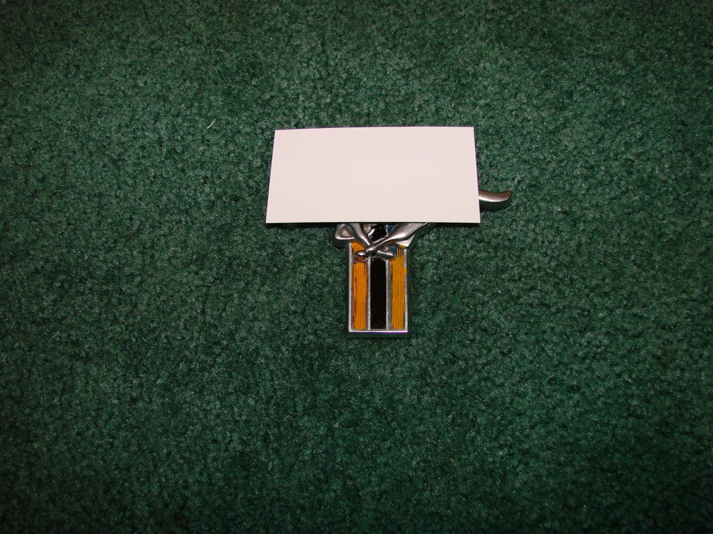 OK, I need the POTR's to chime in here and give me your opinions. I just put an SHR rear medallion (great quality piece by the way) on and I want to put a custom painted tri-bar pony emblem on it. I painted an old emblem I had in my garage just to get an idea and I need your suggestions. What do you think looks better, the top half, bottom half, or as is with the slit design? Keep in mind that this looks very sloppy, I just slapped some paint on it to get an idea.
