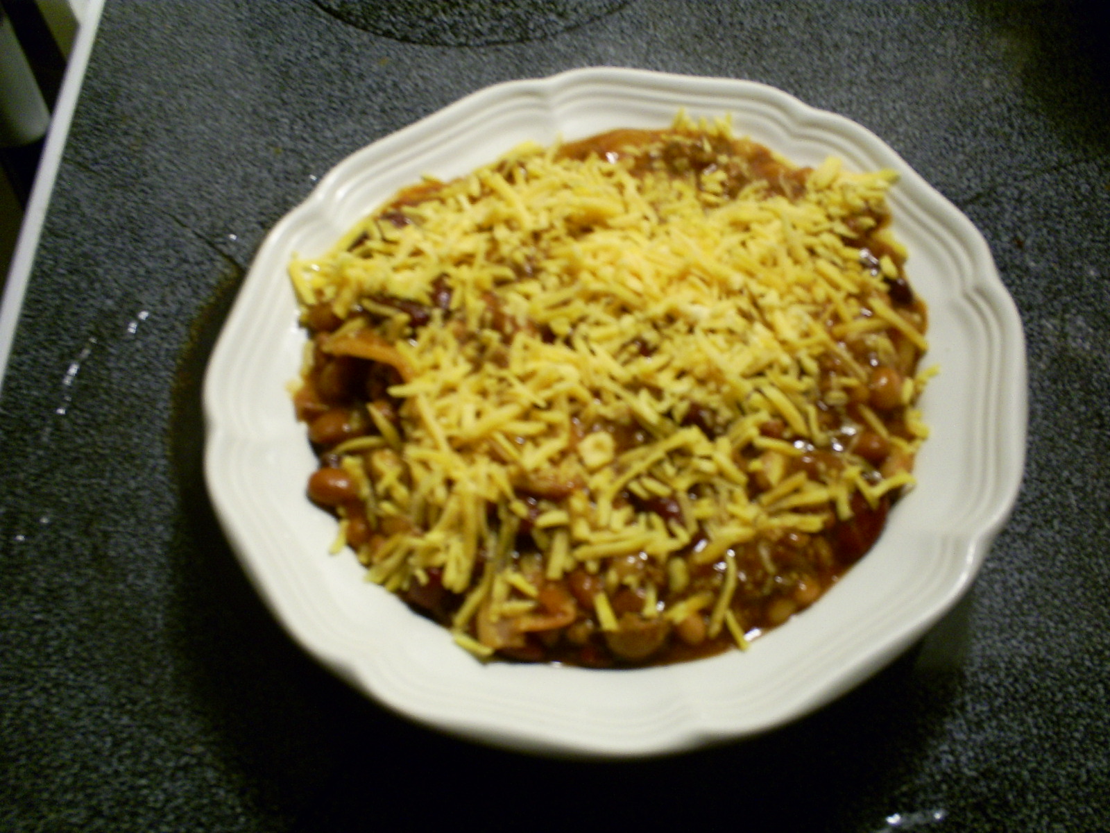 you can certainly add peppers and chili's if you want it hot, but I like it the best this way out of the way I've had it. It's got a bit of kick from the ingredients, but wont have you icing burns on the butt-o-meter. Add on some grated cheese, and it's worthy. Not to mention, after a bowl full, you'll be stuffed!
