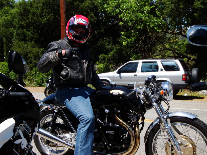 He showed me his bike when Jed was taking our picture. I didn't realize that he was one of the bikes that passed us up later. He must of flown down that hill.