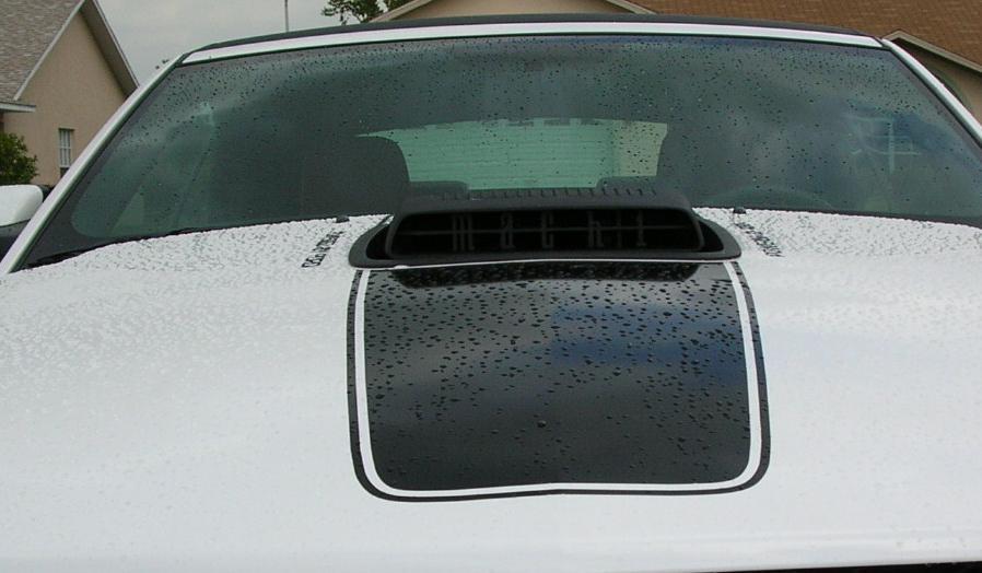 Are you blond, too? Actually, I'm glad it's that hard to see! You know the "grille" in the scoop? There is still one part of it barely visible between the "h" and the "1". When it's chromed, you would never see it, but since it's flat black like the scoop, you can kinda see it. So I'm thinking of painting the emblem gloss black so it sorta stand out from the scoop, but still is only visible if you look closely.