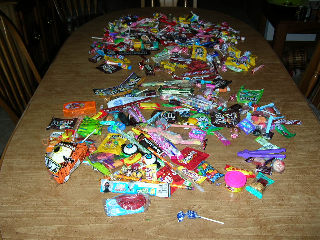 . Almost gave one kid a razor to go shave with instead of candy.