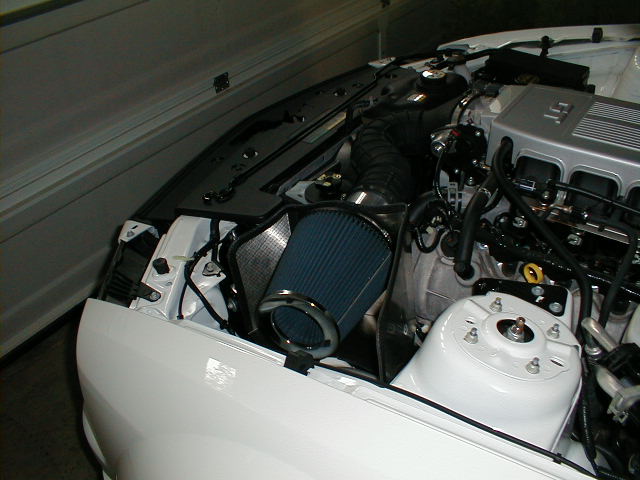 I really like the way the shaker goes into the stock air box, but I may be losing points at car shows since everybody has this nice CAI and I have this black blah box.